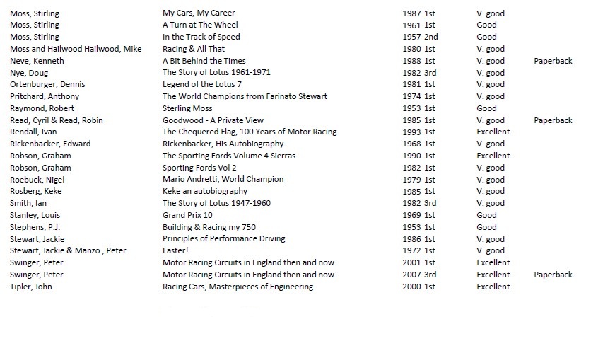 Grand Prix Race by Race Account of Formula 1 volumes 1&2 1950 to 73 By Mike Lang Forward by Stirling Moss & Jackie Stewart. ISBN 0 85429 861 4.- GBP 40.00