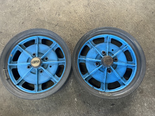 A pair of front wheels from a MK 9 Cooper 500